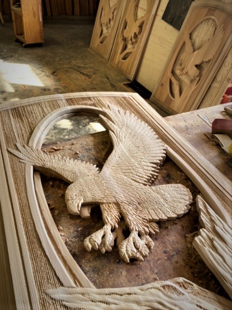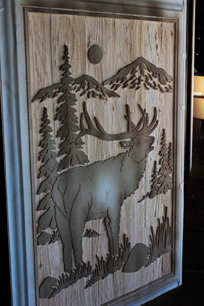 For many of our carved door designs, other than some sanding & prepwork, this is as far as we go. For other designs, especially those featuring animals, we will ad additional dimension & carved details using a variety of carving tools and lots of sanding. This adds a depth of realism to the animals as well as the surrounding image that can’t be achieved through the sandcarving process alone.